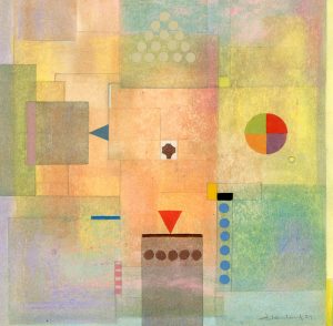 Pastel et collage sur papier, daté, signé au coin infér. droit et monté sous passe-partout blanc et cadre doré en bois. Dim. cadre : 43 x 43 cm ; sujet : 26 x 26 cm.