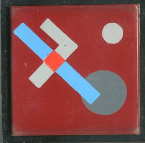 Petite huile laquée sur bois, monogrammée au dos. Dim. : 9 x 9 x 0,9 cm.