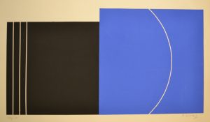 Sérigraphie originale en 2 couleurs tirée sur fin vélin d'Arches, just. 273/300, datée et signée au crayon. P., Galerie Lamy, 1975, dim. support : 50 x 65 cm ; sujet : 32 x 60 cm.
