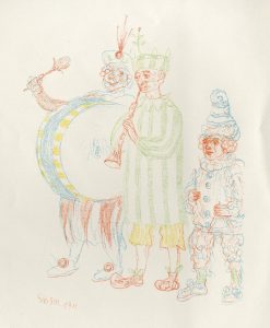 4° oblong, 11-[6]-31 (musique notée), 21 planches en couleurs protégées par des serpentes légendées, en f. (couv. manquante, rouss. éparses sur les tranches, pet. pli angulaire). Édition originale de ce ballet composé en 1907 par James Ensor qui en établit le texte, la musique, les costumes et les décors. Tirage limité à 270 ex. num. 1/250 grand vélin d'Arches.