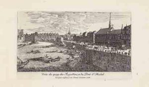 représentations de monuments français, principalement parisiens : Notre-Dame, Hôtel de ville, Église Saint-Victor, Eglise de l’ hôpital Saint Louis, Eglise des Carmes et grande galerie du Louvre, Ile Louvier et Ile Notre-Dame, Palais d’Orléans, Hôtel de Soissons, Cours de la reine mère, Eglise et cour du Temple, Tour de Nesle et Hôtel de Nevers, Eglise Saint-Martin des Champs, Eglise Saint-André des Arts, Eglise de l’Oratoire, Eglise Saint Roc, Eglise des Bernardins, Eglise des incurables, Eglise de la charité, Chapelle et maison de Sorbonne, Fort royal dans le jardin du Palais Cardinal, Hôtel de la Vrillière, Hôtel de la Chevreuse, Hôtel de Bautru, Maison de Madame de Bretonvilliers, Grand Couvent des Augustins, Maison de plaisance de Jean-François Gondy, Partie du cours et de la savonnerie, Quai des Augustins et pont Saint-Michel, Archevêché de Paris et Pont de la Tournelle, Maison et jardin du grand prieur du Temple, Jardin de Monsieur Renard aux Tuileries, Tuileries, Louvre, Hôtel de Saint-Paul, Château de Chaillot, Profil de la ville de Paris. On y voit également des vues de Meudon, Saint-Cloud, Boulogne, Tanlay, Quincy, Liancourt, Fontainebleau, Saint-Germain-en-Laye, Rueil, Chantilly, Saint-Denis, Vincennes, Ecouen, Fresnes, Poissy, etc. Les planches sont d’un beau tirage. Elles sont conservées dans un recueil en vélin de l’époque dont on a retiré une première centaine de planches comme le montre la numérotation manuscrite ancienne qui débute au n° 93. Reliure déboîtée. On joint : - Deux recueils composés de plusieurs séries de gravures. 2 albums in-8 oblong, basane fauve marbrée de l’époque. En tout 114 vues gravées de Flamen, Le Clerc, Vallet, Sylvestre, Chedel, Montaigne, Daumont, Poulleau, Cochin fils, Perelle, Lentara, Vivarès, Benoist, etc.