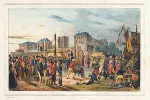 tirage. Bel album complet du peintre et lithographe Victor Adam comprenant 12 planches lithographiées d’après nature, toutes coloriées et gommées. Bal de Montmorency, Foire aux loges, Joutes sur l’eau à la Villette, Vincennes, Beau-Grenelle, Fontenay-aux-Roses, La Saint-Jean à Sceaux, Saint-Cloud, etc. Peintre et lithographe élève du baron Regnault, Victor Adam (1801- 1866) se consacra dès 1824 à la lithographie, mettant en œuvre plus de quatre mille pièces. Dessinateur habile, ses confrères le sollicitaient pour animer leurs “sites pittoresques” de personnages en mouvement. Après 1848, Beraldi lui fait grief de signer une production trop “commerciale”. Rousseurs. (Inventaire du fonds français après 1800 I, 38-39.- Paul Marmottan, L’École française de peinture, 1789-1830, p. 68.- Adhémar, nº 213).