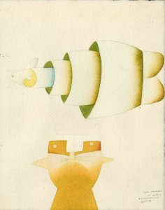 Aquarelle et mine de plomb sur papier, signée, dédicacée "à Fernande et Jacques [Richez]" et montée sous cadre en alu. Dim. cadre : 27,5 x 22 cm ; support et sujet : 24,5 x 19 cm. Peintre, graveur, aquarelliste et créateur d'affiches, Josse Goffin (Bruxelles, °1938) étudie à La Cambre à Bruxelles. Actif comme illustrateur et dessinateur pour de nombreux périodiques tels que "Lui" ou "Vogue". Dans ses compositions, il intègre notamment des monstres ailés, des parties de poissons, des squelettes et la critique le qualifie d'ailleurs de Jérôme Bosch contemporain. Ces oeuvres sont pleines de rêve et de poésie et ne manquent pas d'humour. Professeur à La Cambre dès 1979.