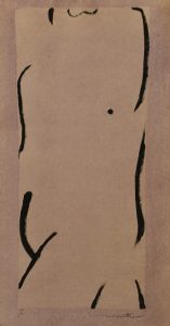 Technique mixte sur papier, datée, signée au coin infér. droit, marouflée sur toile et montée sous cadre noir en bois. Dim. cadre : 74 x 40 cm ; sujet : 72,5 x 38,5 cm. René Guiette (Anvers, 1893-1976) tend progressivement vers la sérénité d'une abstraction poétique. Il crée ainsi des oeuvres monochromes dans lesquelles il intègre du sable ou du ciment. A la fin des années 60, la matière disparaît et il évolue vers une peinture du signe pur, comme expression d'un esprit méditatif.