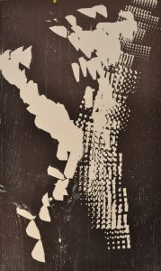 Xylographie et pochoir en noir tirée sur vélin de Rives, just. H.C. et signée au crayon. Timbre à sec d'éditeur. St. Gallen, Erker-Galerie, 1973, dim. support : 76 x 56 cm ; sujet : 49,5 x 30 cm.