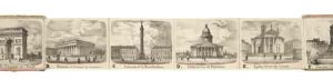Alphabet de monuments de Paris. Paris, chez tous les marchands de nouveautés, 1871. In-12 oblong, cartonnage de papier marbré avec vue de Paris collée sur le premier plat. Rare abécédaire des monuments de Paris contenant 24 vues lithographiées