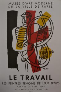 Lithographie en couleurs pour l'exposition annuelle "Les Peintres témoins de leur temps" au Musée d'Art moderne de la ville de Paris. P., Impr. Mourlot, 1951, dim. : 76 x 52 cm.