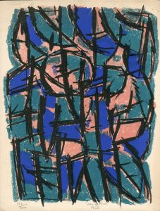 Lithographie originale en couleurs tirée sur vélin crème, just. 136/200, datée et signée au crayon. Dim. support et sujet : 33 x 25 cm. Planche réalisée à l'occasion de son exposition particulière en février 1956 à la Galerie de France à Paris.