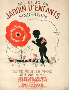 Partition pour piano illustrée par René Magritte, signée dans la planche du pseudonyme Emair. Suite pour piano d'Auguste De Boeck. Brux., Editions modernes, 1933, 20 p., 35 x 27 cm. Zincographie tirée en rouge et noir (Schwilden, 61A mais sans mention d'édition).
