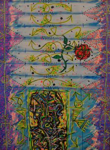 Technique mixte sur papier, datée, signée au coin infér. droit et montée sous cadre jaune en bois. Dim. cadre : 73,5 x 53,5 cm ; support et sujet : 65 x 49 cm. Peintre algérien contraint à l'exil en 1994, Denis Martinez (Marsat El Hadjadj, °1941) vit et travaille à Marseille. Il a suivi l'Ecole des Beaux-Arts d'Alger puis de Paris. Participe à la plupart des expositions collectives de peinture algérienne en Algérie et à l'étranger. Rétrospective au Musée d'Alger en 1985.