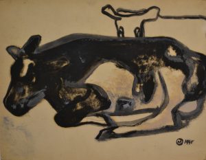 Encre de Chine et gouache sur papier, datée, monogrammée au coin infér. droit et montée sous passe-partout blanc et cadre en bois naturel. Dim. cadre : 78 x 63 cm ; support et sujet : 27 x 35 cm.