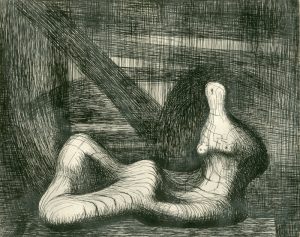 MOORE (Henry). "Reclining Figure Piranesi Background III" (1979).