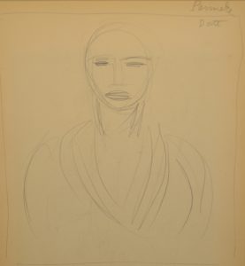 Mine de plomb sur papier, signée "Permeke" au coin supér. droit, montée sous passe-partout crème et cadre en bois naturel. Dim. cadre : 59,5 x 48,5 cm ; support et sujet : 35 x 25 cm.