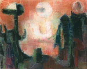 Pastel sur papier, signé au coin infér. droit, daté, signé au verso et monté sous passe-partout. Dim. passe-partout : 33 x 38 cm ; sujet : 19 x 24 cm./ IDEM. "Requiem". Pastel sur papier, signé au coin infér. droit et titré au verso. Dim. support et sujet : 22,5 x 20 cm./ IDEM. Sans titre (1970). Collage et pastel sur papier, signé au coin infér. droit. Dim. support et sujet : 24 x 31 cm./ IDEM. "Jacob et l'ange" (1962). Technique mixte sur papier, signée au coin infér. droit, titrée, datée au verso et montée sous passe-partout. Dim. passe-partout : 21 x 27 cm ; sujet : 12 x 16,5 cm./ IDEM. "Monde du silence" (1968). Crayon de couleurs sur papier, titré, daté, signé au coin infér. droit et contrecollé sur papier teinté. Dim. support et sujet : 16 x 21 cm. Bel ensemble./ Ens. 5 pièces.