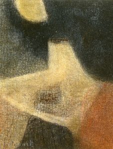 Huile sur papier, signée au coin infér. gauche, titrée au verso et montée sous passe-partout. Dim. passe-partout : 29 x 25 cm ; sujet : 17 x 13 cm./ IDEM. "Les Puits de la terre" (1970). Technique mixte sur papier, signée au coin infér. droit, titrée, datée au verso et montée sous passe-partout. Dim. passe-partout : 25 x 29 cm ; sujet : 20 x 24,5 cm./ IDEM. "Terre". Pastel et découpage sur papier, signé au coin infér. droit, titré au dos et monté sous passe-partout. Dim. passe-partout : 34,5 x 36,5 cm ; sujet : 18,5 x 20,5 cm./ IDEM. "Monde du silence" (1968). Technique mixte sur papier, signée au coin infér. droit, titrée, datée au verso et montée sous passe-partout. Dim. passe-partout : 31 x 27 cm ; sujet : 16,5 x 13 cm./ IDEM. Sans titre. Stylo-feutre sur papier, signé au coin infér. droit et monté sous passe-partout. Dim. passe-partout : 31 x 30 cm ; sujet : 15 x 14 cm./ Ens. 5 pièces.