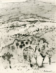 Sans titre (1941), "Etude pour une crucifixion" (1951), "Aspremont" (1964), "Poupée" (1975), "La Mort du cygne" et Sans titre (1989). Ensemble de 6 dessins sur papier (crayon gras, aquarelle et encre), datés et signés. Format : de 11 x 23 cm à 18 x 22 cm.