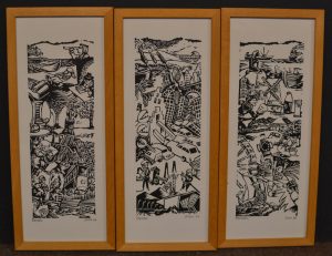 Suite de 12 linogravures originales en noir, titrées, just. E.A., signées au crayon et montées individuellement sous cadre en bois naturel. Dim. cadre : (12 x) 34,5 x 14,5 cm ; sujet : (12 x) 26 x 9 cm. Dessinateur, illustrateur, graphiste et affichiste, Jean-Claude Salemi (Casablanca, °1950) a suivi une formation en architecture à Saint-Luc à Bruxelles. Il est membre de l'atelier "Razkas" à Bruxelles, un collectif de dessinateurs, graveurs et lithographes.
