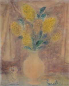 SCHIRREN (Ferdinand). Sans titre [Nature morte au bouquet de fleurs et à la sirène].