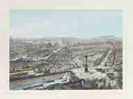 Chapuy (Nicolas). Paris et ses arrondissements. Paris, impr. Lemercier, sans date [1850]. In-folio, demi-vélin à coins (reliure moderne). Superbe album de 12 grandes vues lithographiées en trois tons de Paris. 12 vues à vol d’oiseau des douze