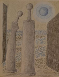 Crayon noir et de couleurs sur papier, daté, monogrammé au coin infér. droit et contrecollé sur 1 grand feuillet blanc. Dim. support et sujet : 28 x 21 cm (pli angulaire).