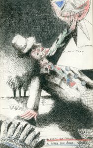 Encre de Chine à la plume rehaussée au crayon de couleurs, titrée, datée, signée au coin infér. droit et montée sous passe-partout blanc et verre. Dim. cadre : 50 x 41 cm ; sujet : 30 x 19 cm.