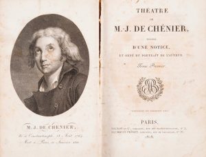 Chénier, M. J. de. - Théâtre de M. J. de Chénier, précédé d’une notice, et orné d’un portrait de l’auteur. Théâtre posthume … précédé de considérations sur la liberté du théâtre en France. - Paris : Foulon et Cie, Baudoin...