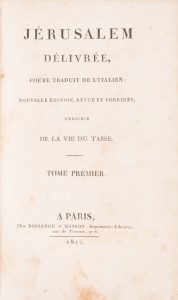 Le Tasse, [Torquato Tasso]. - La Jérusalem délivrée. Poème traduit de l’italien ; nouvelle édition, revue et corrigée, enrichie de la vie du Tasse. - À Paris : chez Bossange et Masson, 1814.
