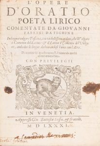Oratio [Horace, Quintus Horatius Flaccus]. - L’opere d’Oration poeta lirico comentate da Giovanni Fabrini da Fighine, in lingua vulgare toscana, con un bellissimo ordine, ch’l vulgare è comento dal latino : il latino è comento del vulgare,...
