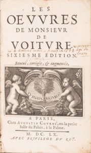 Voiture. - Les œuvres de Monsieur de Voiture. Sixième édition. Revue, corrigée et augmentée. - À Paris : chez Augustin Courbe, 1660.
