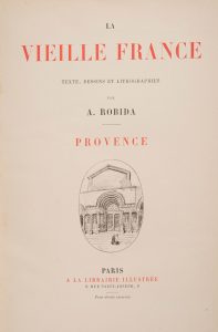 On joint un volume par Robida. - La Vieille France. Provence. - Paris, Librairie Illustrée, sans date. Grand in-4 (31x22, 5cm), de 332 pp. demi-basane marron, reliure de l’époque. Texte et nombreuses illustrations in et hors-texte de Robida.