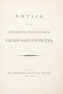 [Fauris Saint-Vincens, Alexandre-Jules-Antoine]. - Notice sur Jules-François-Paul Fauris Saint-Vincens An VIII; Inscription grecque tirée de la maison qu’avoit habité Peiresc; Mémoire sur une urne sépulchrale et sur une inscription en vers...