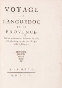 [Lefranc (J.-J., Marquis de Pompignan)]. - Voyage de Languedoc et de Provence. Edition entièrement différente de celle d’Amsterdam, et plus correcte que celle d’Avignon. - A La Haye, s.d., 1745 ;