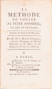 M.S. [Sanchez] et Heister. - La méthode de tailler au petit appareil et ses avantages. Paris, Durand et Pissot, 1751, traduit du latin par Heister.