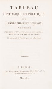 [Coiffier De Verfeu, Henri-Louis]. - Tableau historique et politique de l'année mil huit cent six, précédé d'un coup d'œil sur les cinq premières années du dix-neuvième siècle et accompagné de portraits gravées en taille douce. - Paris,...