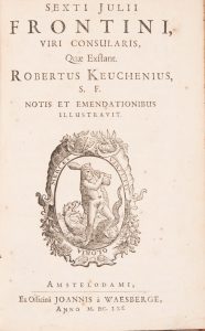 Frontinus, Sextus Julius. - Viri consularis quae extant. Robertus Keuchenius,S. F. notis et emendationibus illustravit. - Amstelodami, ex officina Joannis Waesberge A, 1661.