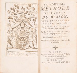 Menestrier, Claude-François. - La nouvelle méthode raisonnée du blason, pour l’apprendre d’une manière aisée ; réduite en leçons, par demandes et par réponses… Nouvelle édition , revue, corrigée et augmentée. - À Lyon : chez...