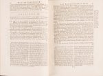 2 tomes reliés en un vol. in-4°, plein veau, dos à nerfs richement orné et doré, tranches rouges. Inversion de pages sans manque au cahier Mm, petite galerie de vers sur 2 cm p. 125, touchant 5 lettres, rares rouss. à quelques feuillets, Coiffes usées, plats épidermés avec manque de cuir au premier plat sur 2 cm. Souvent réédité
