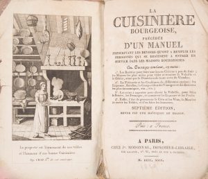 La Cuisinière bourgeoise, précédée d’un manuel prescrivant les devoirs qu’ont à remplir les personnes qui se destinent à entrer en service dans les maisons bourgeoises…septième édition… - À Paris : chez J. Moronval, 1829.