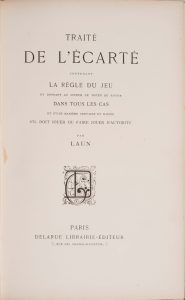 Laun. - Traité de l’écarté contenant la règle du jeu et donnant au joueur le moyen de savoir dans tous les cas et d’une manière certaine et rapide s’il doit jouer ou faire jouer d’autorité. - Paris : Delarue, s. d. (deuxième moitié 19e).