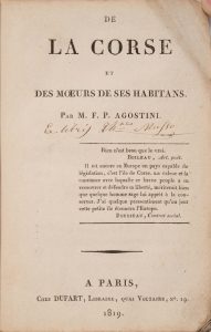 Agostini, F. P. - De la Corse et des moeurs de ses habitants. - À Paris : Chez Dufrat, 1819.