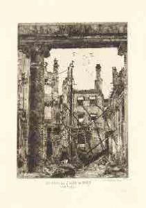 papier chamois illustrée d’une eau-forte. Suite complète de 12 ravissantes eaux-fortes originales à fond teinté restituant Saint-Cloud lors du Siège. Patrouille prussienne dans Saint Cloud ; Un coin du Salon de Mars, château ; Rue Royale du haut ; Rue de l’Église ; Château ; Dans la ville ; La Lanterne avant la guerre, La Cascade du parc ; Hôtellerie de la tête noire, fontaine de la source ; Ruines de maisons ; Breteuil, poste redouté de l’ennemi ; Route départementale, maison Zimmermann ; Gourbi prussien dans le parce de St. Cloud ; Le peintre et graveur François Pierdon (1821-1904) réalisa de nombreuses gravures d’après les dessins de Gustave Doré et travailla pour l’Illustration et le Tour du monde. Les épreuves sont d’un beau tirage. Chemise de l’éditeur abîmée, avec important manque sur le premier plat. (Beraldi, Les Graveurs du xixe siècle X, pp. 274-275.) - Roux (Paul). Le Siège de Paris 1870-1871. Imprimerie Chardon, 1870-1871. Suite de 20 gravures à l’eau-forte (32 x 45 cm). Suite complète de 20 remarquables eaux-fortes originales illustrant les fortifications lors du siège de Paris. Porte d’Auteuil, Porte du point du jour - Bastion 66 (3 sujets), Point du Jour - Grenelle, Grenelle (2 sujets), (Villejuif) Moulin Saquet (2 sujets), Fort de Bicêtre, Fort d’Issy après le bombardement prussien, Hautes-Bruyères, La Redoute des Hautes-Bruyères, Batterie prussienne (Bagneux), La Bièvre arrêtée à la Glacière, La Rapée-Bercy, Porte de Charonne, Batterie de St. Ouen, Suresnes. Chaque épreuve porte le cachet de l’imprimeur Chardon “certifié conforme au tirage”, daté du 26 mars 1872. Titre manuscrit sur la première planche. Fils du peintre Louis Roux, l’aquarelliste et graveur Paul Roux (1845-1918) a été l’élève de Cabanel. Il se fit remarquer pour ses paysages, dessinés d’après nature. Les épreuves sont d’un très beau tirage. Première planche un peu défraîchie. (Beraldi, Les Graveurs du xixe siècle Xi, p. 273.) - Sinnett (F.). Les Ruines de Paris. 1871. Paris, F. Sinnett, 1871. In-12 oblong, percaline verte de l’éditeur. Album de 23 vues de Paris lithographiées en deux tons, dont 2 à double page, montées en accordéon sous forme d’une suite dépliante. Les vues représentent les monuments détruits lors de la Commune de 1870 : maison de Thiers, Colonne Vendôme, Palais Royal, la rue de Lille, Palais des Tuileries, etc. Quelques rousseurs et mouillures, défauts d’usage à la reliure, dorure du titre partiellement passée. - Yon (Edmond). Autour de Paris après la guerre. 12 eaux-fortes par Edmond Yon. Paris, Cadart & Luce imprimeurs, sans date [1871]. Suite de 12 eaux-fortes sur papier vergé (32 x 49 cm), chemise de l’éditeur de papier chamois illustrée d’une eau-forte. Suite complète de 12 eaux-fortes à fond teinté illustrant les dégâts du Siège dans les environs de Paris : A côté de la batterie de Chatillon ; la Mare d’Auteuil ; Tombes prussiennes dans la batterie de Chatillon ; Une maison de campagne à Chatillon ; Avant- postes de la Courneuve ; Sur la route de Paris au Bourget ; Gd. Gardes des franco-tireurs de la Presse, à la Courneuve ; Le Moulin d’Orgemont ; Sur la route de Bièvre ; Le Mur blanc au Bourget, Gd. gardes prussiennes ; Une salle à manger à Fontenay-aux-Roses ; Maison en ruines à Fontenay-aux-Roses ; Très belles épreuves. Chemise de l’éditeur très abîmée.