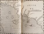 nella quale si contiene il sito di essa, l’origine, e le signorie delle città, e de’castelli ; co’i nomi antichi, e moderni ; i costumi de popoli, e le conditioni, de paesi. Et di più gl’huomini famosi, che l’hanno illustrata ; i monti, i laghi, i fiumi, le fontane, i bagni, le minere, e tutte l’opere maravigliose in lei dalla Natura prodotte. Aggiontovi descrittione di tutte l’isole, alla’Italia appartenenti, co’suoi disegni, collocati ai luoghi loro, con ordine bellisssimo. Con le sue tavole copiosissime. Nuovamente ristamopata, e con somma diligebnza revista, e correeta. - Vinegia : presso Altobello Salicato, 1588. Un vol. in-4°, 34 ff. n. ch., y compris le titre, 100 p. 5 ff. n. ch. (pour Isole appartenenti all’Italia) ; 495 ff. (pour la Descrittione dell’Italia), veau fauve, dos à nerfs richement orné et doré, tranches rouges. Ex libris héraldique comte Odrovgz Siedlincki, cachet de bibliothèque (der sdadt bibliotek Stettin[…]). Charnières usées ou fendues, coiffe inf. arrachée, plats frottés, coins émoussés, intérieur en bon état. Cartes de la Corse (de marge un peu plus courte, provenant d’un autre exemplaire, elle doit être remontée), de la Sardaigne, de la mer Tyrrhénienne, des Iles voisines de Naples, de la Sicile, des îles de la mer Adriatique et plan de Venise, soit 7 planches hors texte.