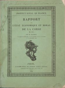Blanqui. - Institut Royal de France. Rapport sur l’état économique et moral de la Corse en 1838... Lu dans les séances des 18 et 27 octobre, 10 et 17 novembre, 8 et 22 décembre 1838.