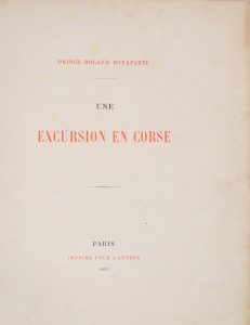 Bonaparte, Roland (prince). - Une excursion en Corse. - Paris : impr. Pour l’auteur [par Georges Chamerot], 1891.