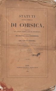 Gregorj, Giovan Carlo. - Statuti civili e criminali di Corsica, pubblicati con addizioni inedite e con una introduzione, per munificenza del Conte Carlo Andrea Pozzodiborgo, da... - Lyon : impr. Dumoulin, Ronet et Sibuet, 1843.
