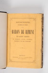 Griscelli [pseud. de: Vezzani, Jacques François de]. - Mémoires de Griscelli de Vezzani, dit le baron de Rimini ex-agent secret de Napoléon, Cavour, Antonelli, François II et de l’Autriche. - Bruxelles : imprimerie Ch.et A. Venderauwera, s....