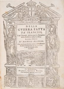 Merello, Michele. - Della guerra fatta da’ francesi, e de tumulti suscitati poi da Sampiero dalla Bastelica nella Corsica. Libri otto di... Con una breve dichiarazione dell’instituzione della Compera di S. Giorgio, e de’Principali della...