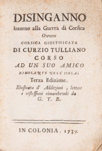 [Natali, Giulio, Mattei]. - Tulliano, Curzio. - Disinganno intorno alla guerra di Corsica ovvero Corsica giustificata di.... Corso ad un suo amico dimorante nell’isola. Terza edizione. Illustrata d’addizioni, lettere e riflessioni rimarchevoli...