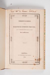 Observations d’un électeur constitutionnel du 2e arrondissement de la Corse sur nos élections. - Bastia : Fabiani, 1838. -