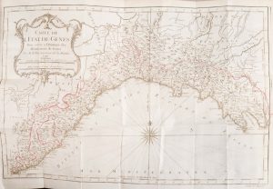 3 v. (XL- 417, 1 ff. n. ch. ; vii, 431 ; iv - 324 p.) : 2 cartes (sur 3) ; 3 vol. in-8°, plein veau fauve marbré, dos à nerfs richement orné et doré, coupes dorées, tranches rouges. Carte de la Corse dépliante par Bellin, spécialement dressée pour ce volume (voir cartouche), 44 x 27, carte de l’état de Gênes. Le plan de Gênes manque. Une charnière fendue sur 2 cm, coins parfois émoussés, sinon bel exemplaire.